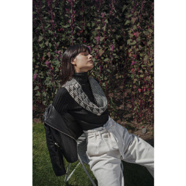 ストライプとモザイク模様を組み合わせた、シャープな印象のカウル。