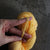毛糸は一綛ずつ手で染められ、染めた村とその人のサインが手書きで入っています。編む側も特別な気持ちになる糸です。