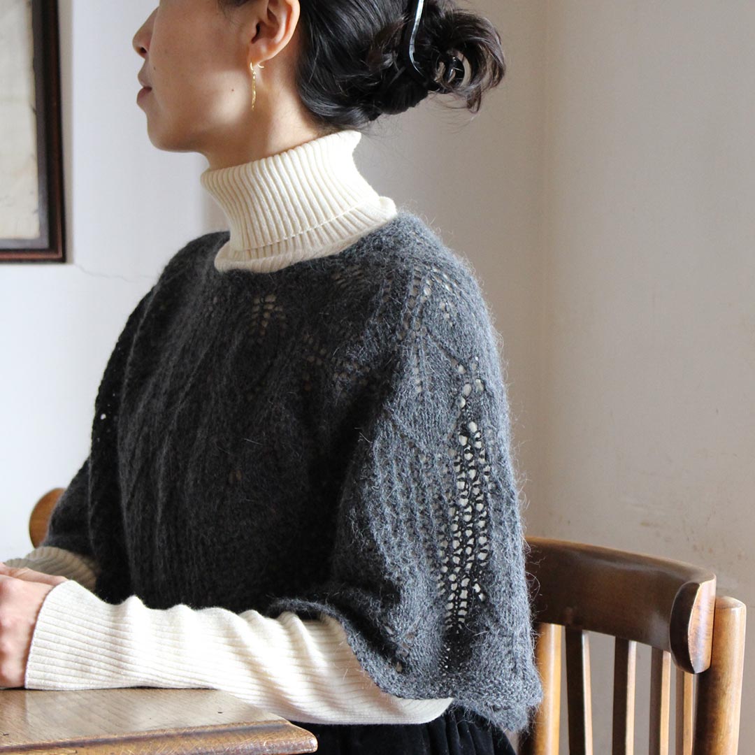 模様の中に増し目が組み込まれていて、編み進めていくうちに自然と裾に向かって広がっていきます。