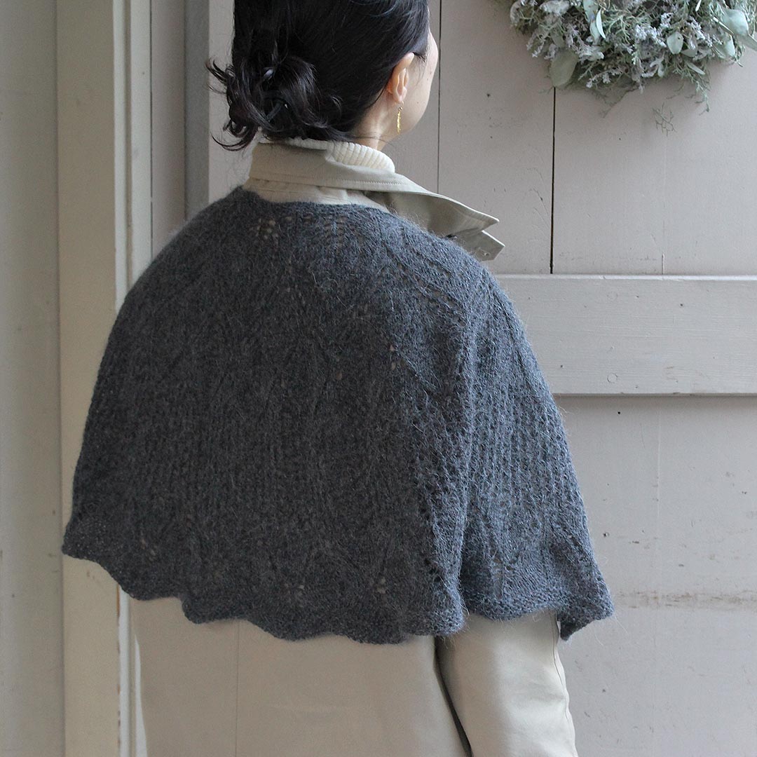 木の葉と網目の模様がリズミカルに繰り返された、ふんわりロマンチックなショール。