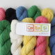 目安として、「ファイブトゥソックス」には各色1かせ(合計2かせ)、「レースアンクルソックス」には2かせ、コットンソックスパターンに掲載の「コットンソックス」に2かせ、「ヨガソック」に1かせ使用しています。