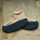 かぎ針で底をしっかりと編み上げてから、棒針編みで甲から履き口に向かって進めるルームシューズのパターンです。