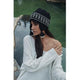 トライアングルの編み込み模様がポイントの、イヤーフラップ付きの帽子。