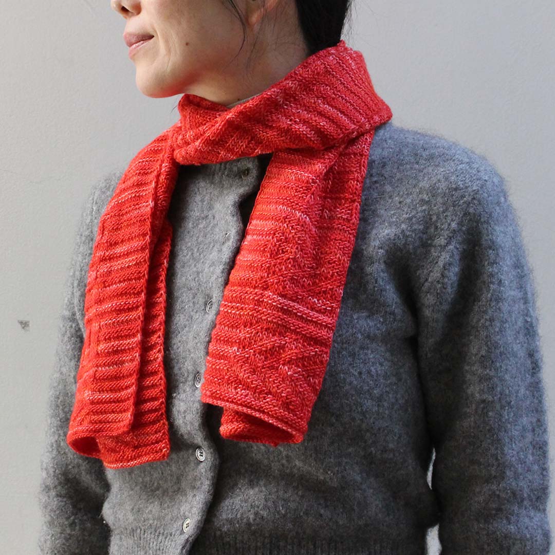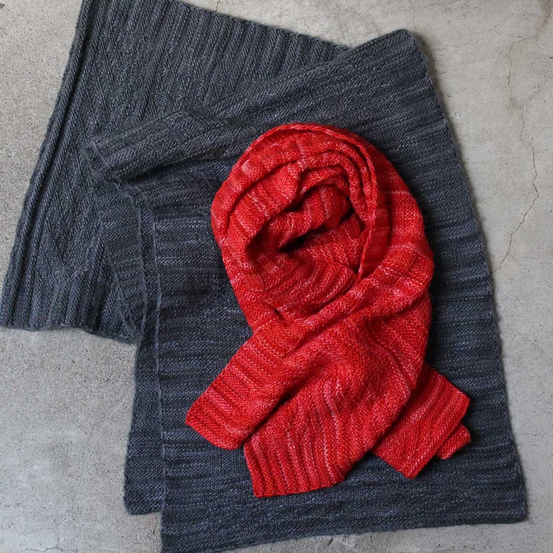 さりげなくも美しい陰影のある編地に仕上ります。シックな色で編めば、男性にも似合うスカーフに。