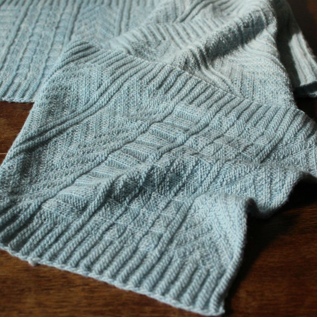 裏目と表目の組み合わせでつくるガーンジー模様を、全面に編み込んでいきます。