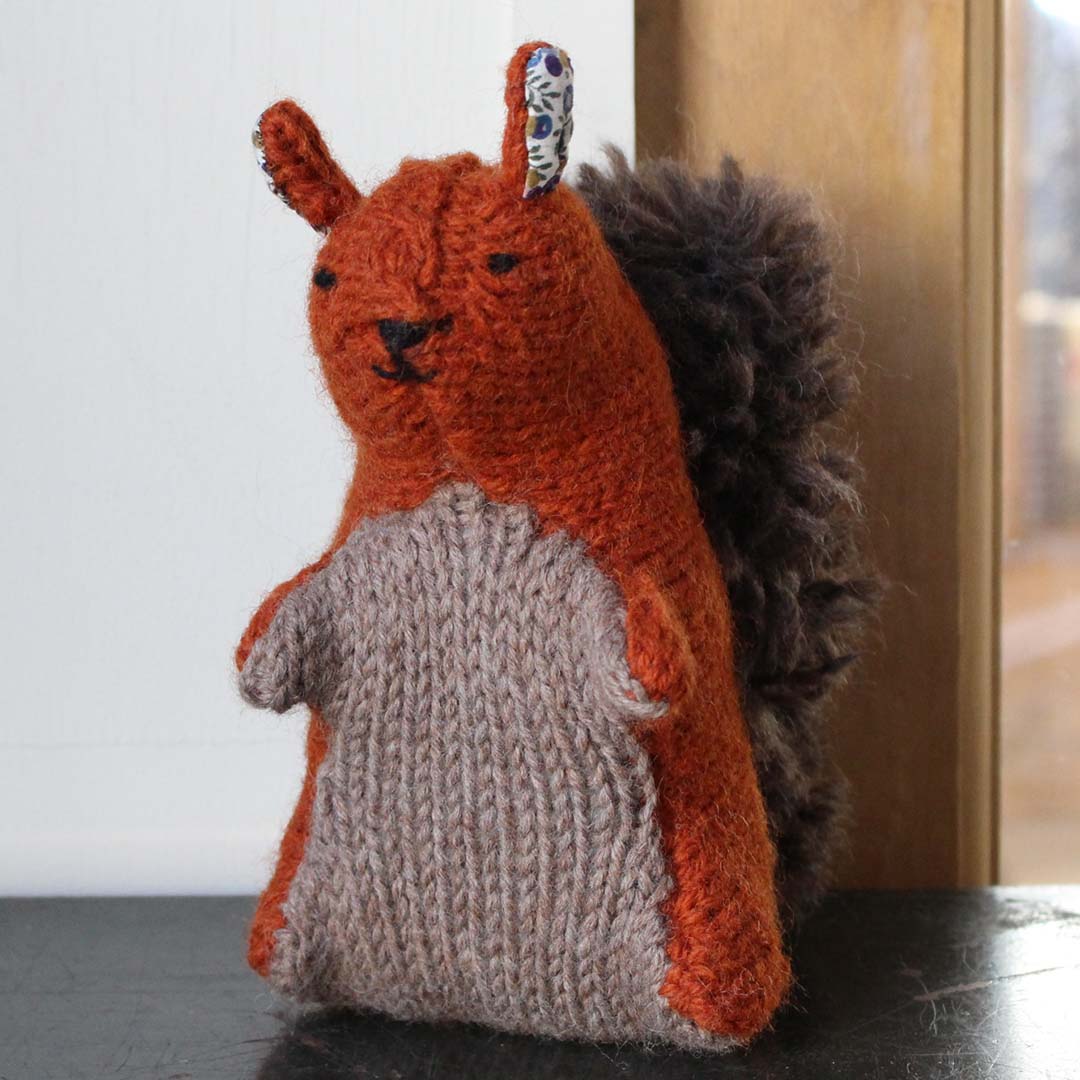 最初の「ともだち」は、背の部分にケーブル模様をあしらった「りす」。