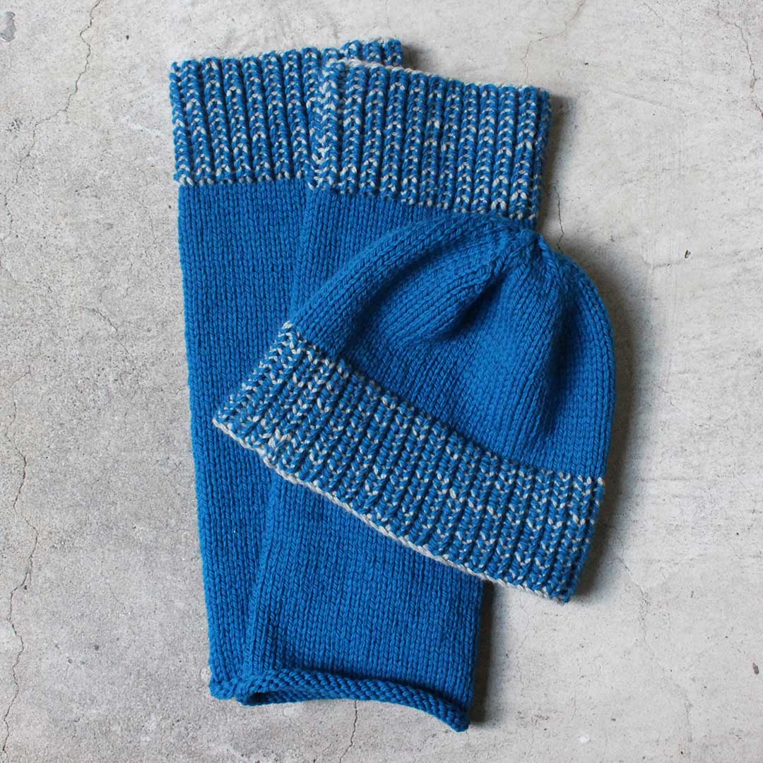 自分でつくる「引き上げ編みのリブをつけたレッグウォーマー&ハット」キットもご用意しています。