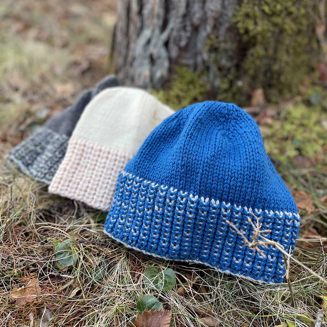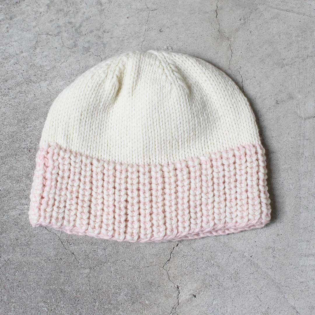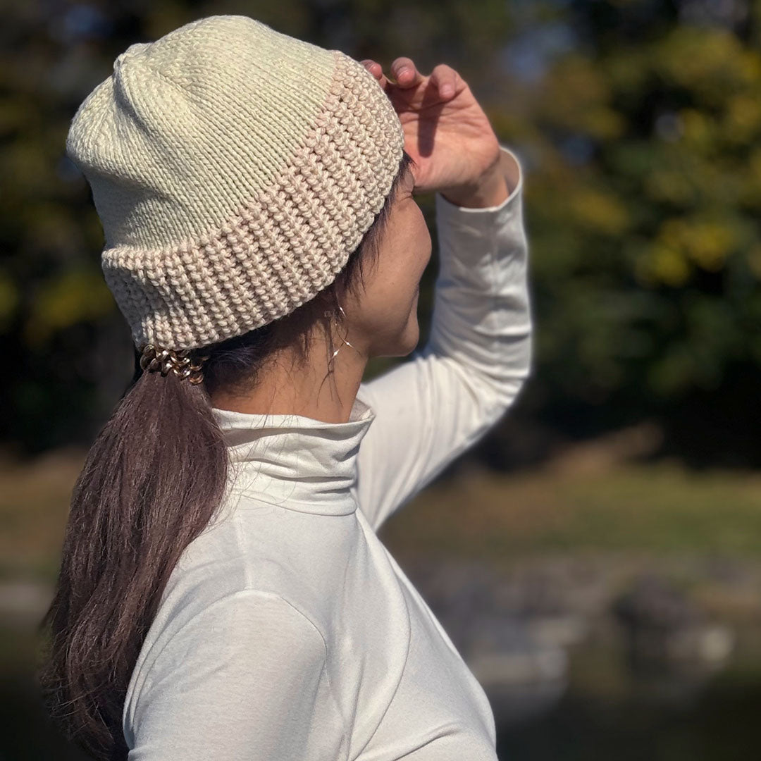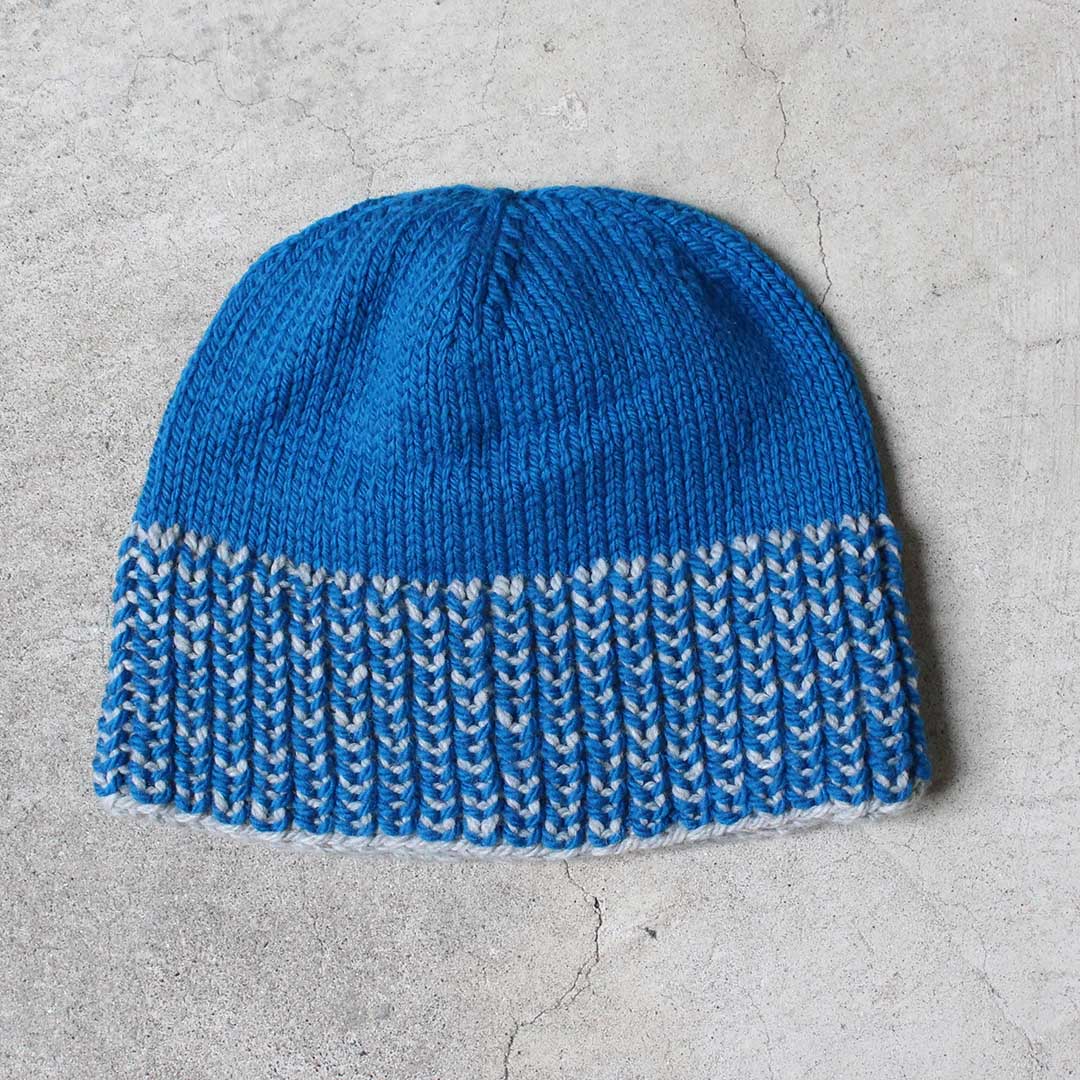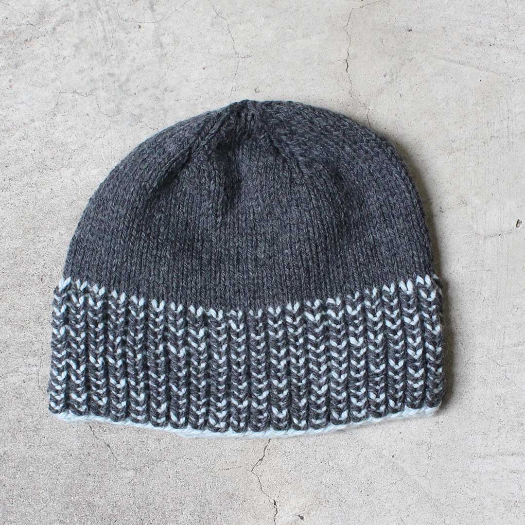 2色使いのリブがポイントの「引き上げ編みのリブをつけたハット」完成品オーダーを承ります。