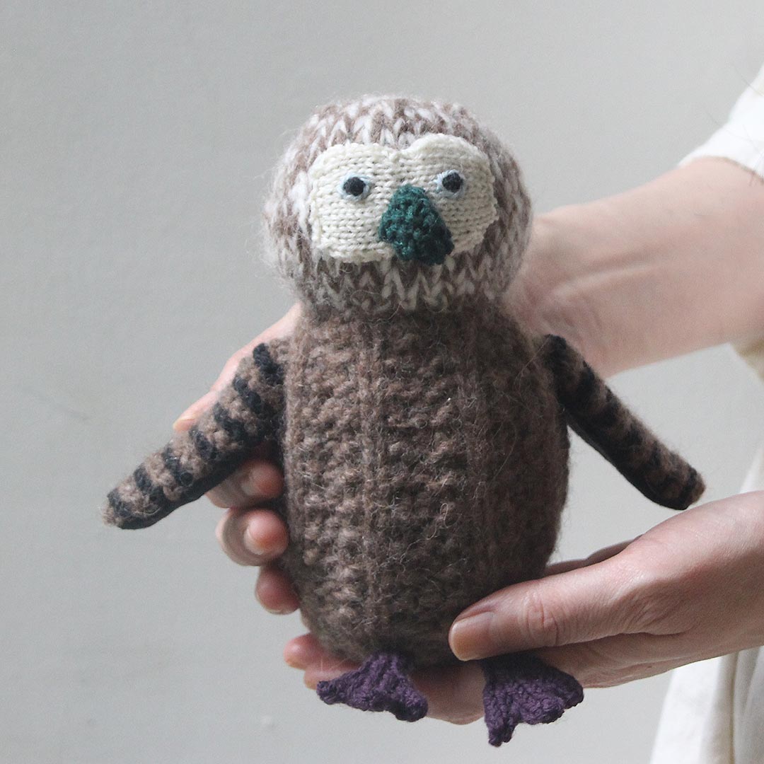 手編みならではの表現を最大限に活かしながら、制作工程にはあみぐるみ、ぬいぐるみ両方の技法を盛り込んで、金森さんデザインの「ふくろう」になるよう工夫しています。