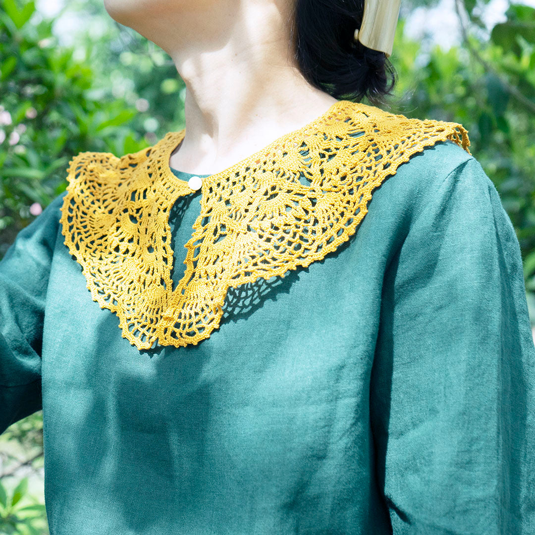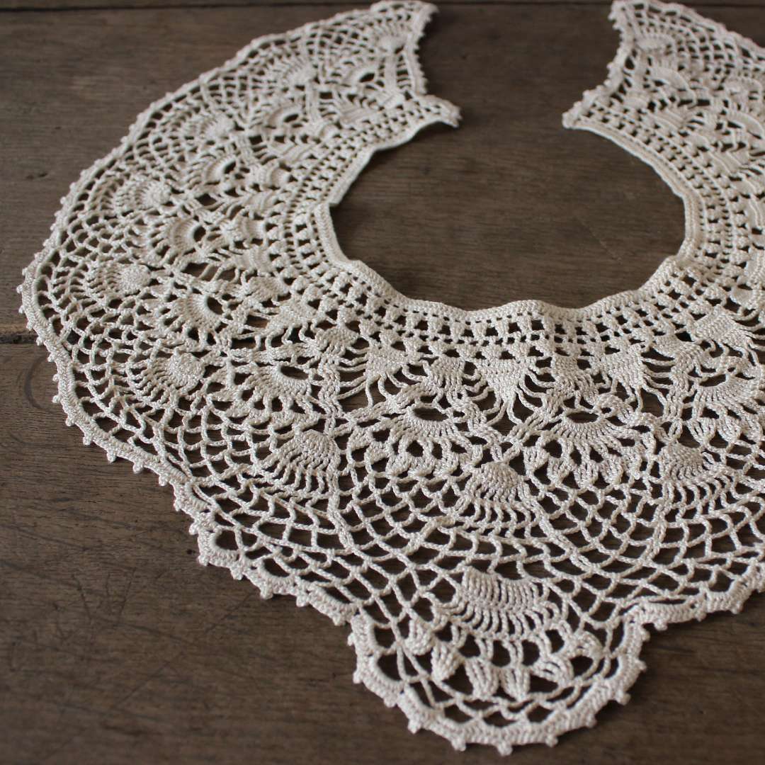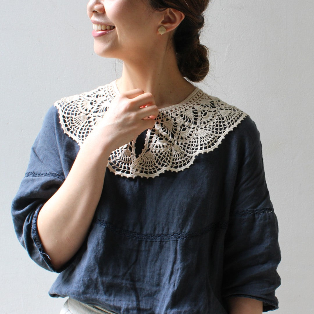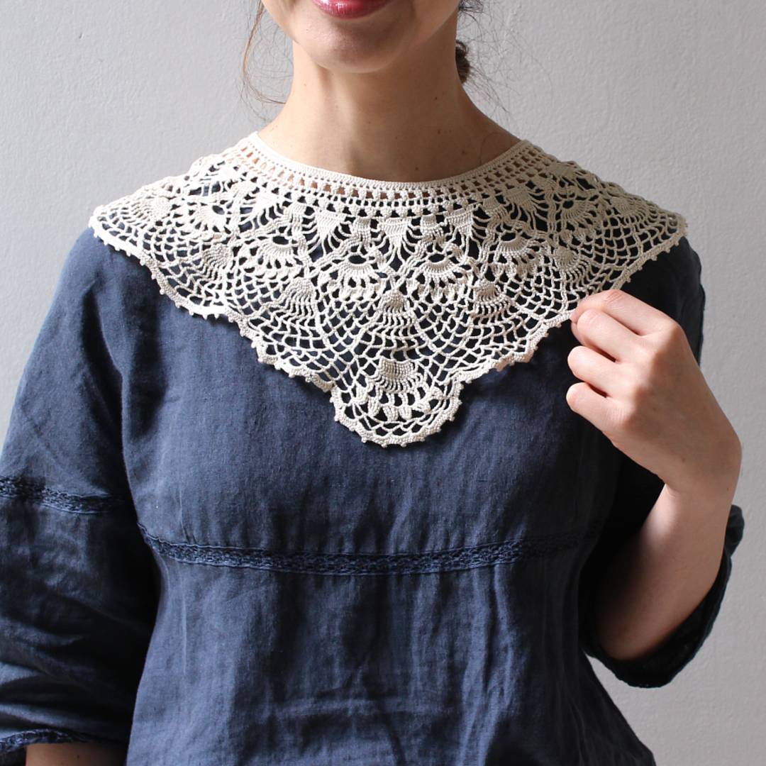 ヨーロッパの蚤の市で出合うヴィンテージレースをイメージした、クラシカルなデザインのつけ襟です。