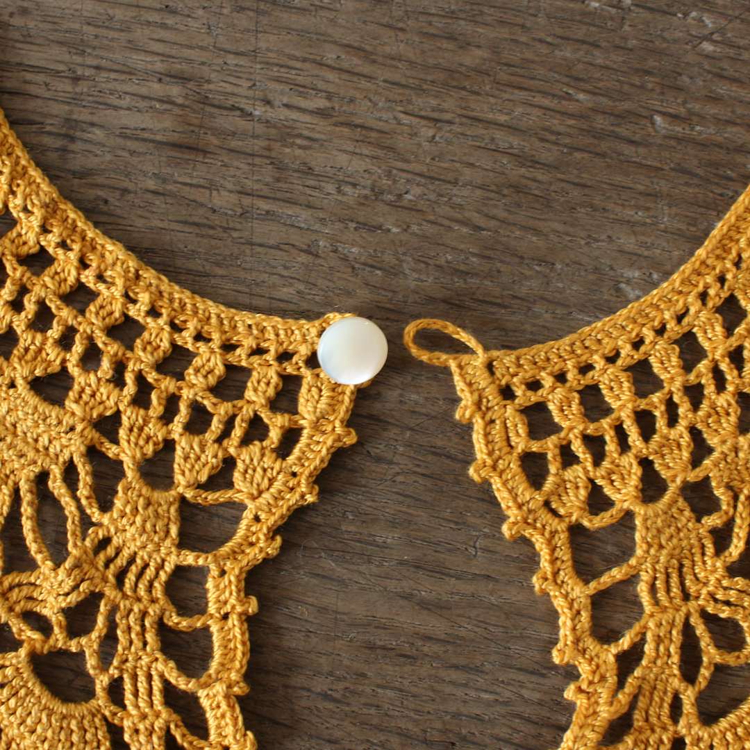 コットン糸の作品 およそ:襟まわり47cm、襟の幅 13cm(後ろ中心の幅 17㎝)