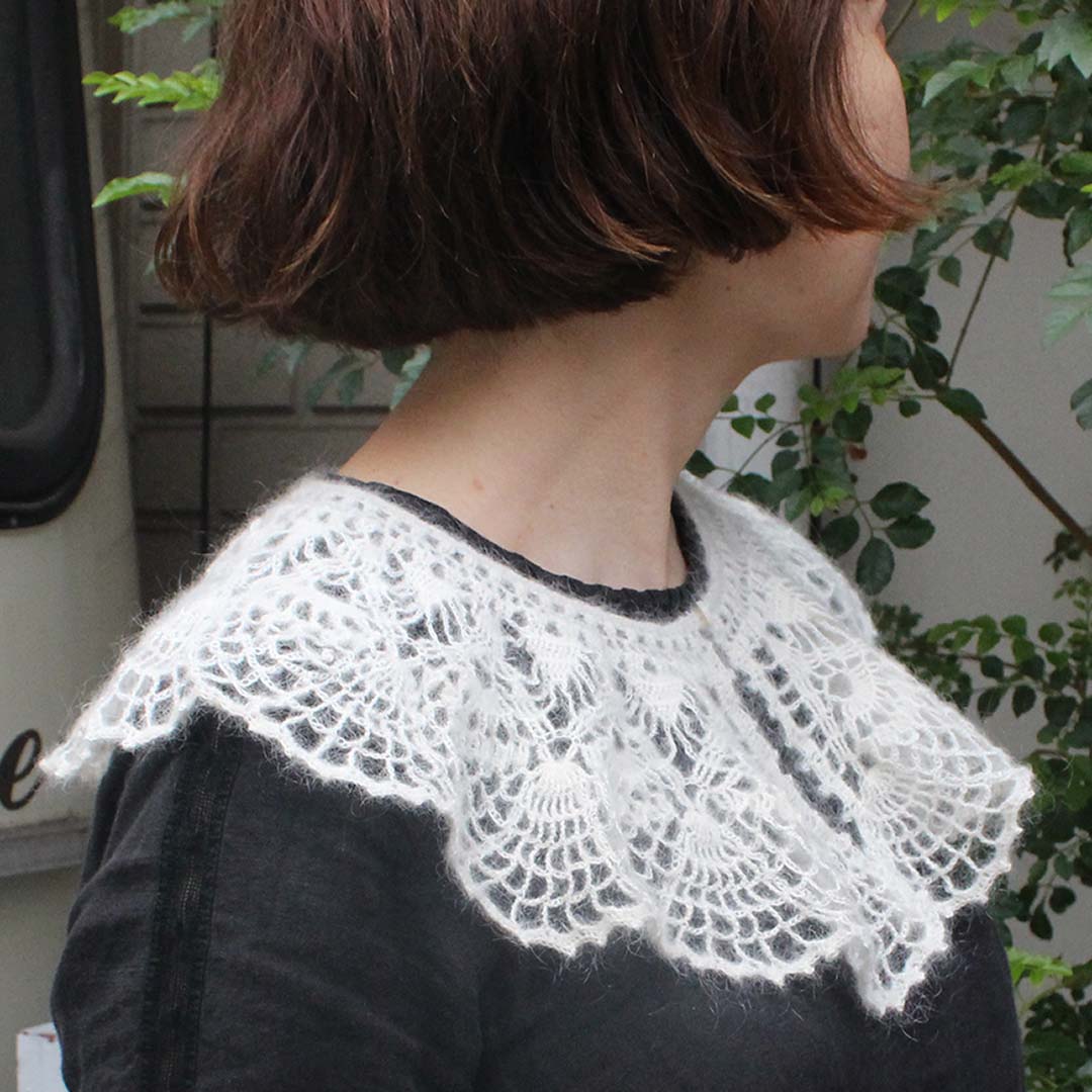 「かぎ針編みのレースカラー 【モヘア/ブラッシュトスリ】 キット」はこちらから