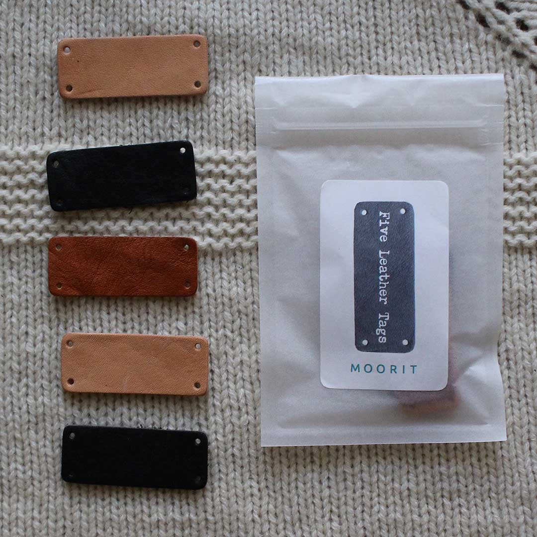 手編みのプロジェクトのアクセントにぴったりのレザータグを5枚セットにしました。